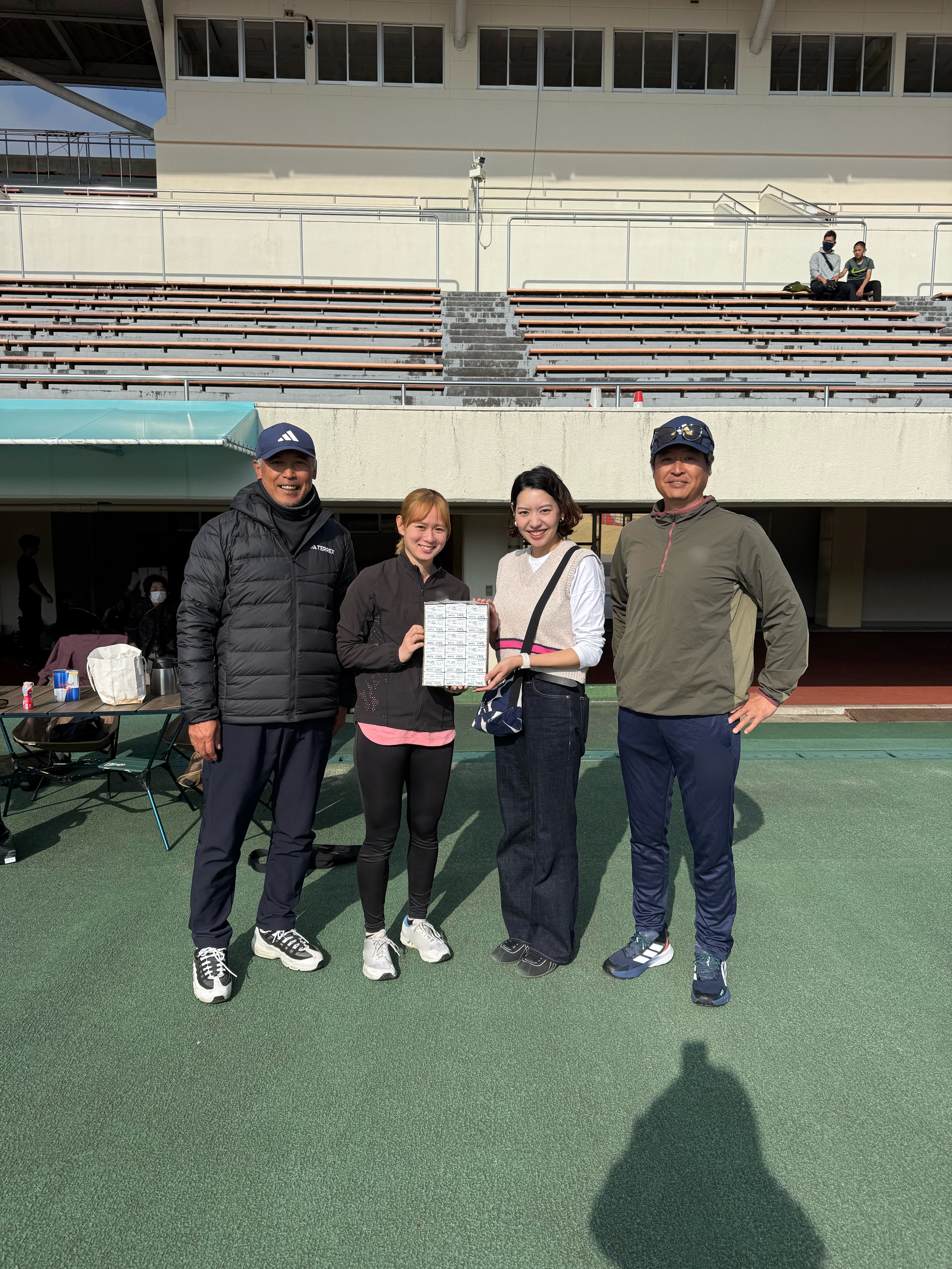 写真は左から安井先生、3年佐々木(千)、OG梅元様、遠藤先生です。